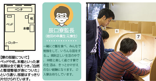 また、寮では起床時間や就寝時間、学習時間がしっかりと決まっているため、規則正しい生活を身につけることができます。
